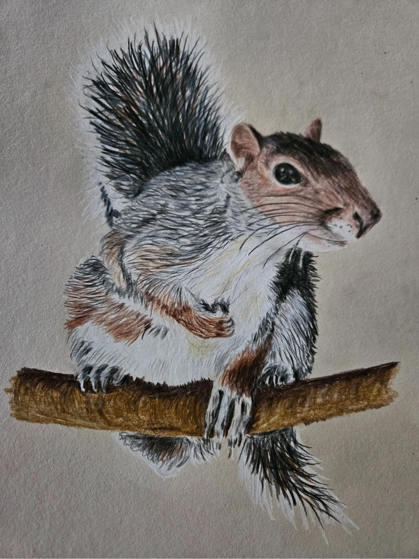 I had great fun working on this squirrel, especially its tail wchich was so wispy and delicate. I think pencils are just the thing for this sort of drawing - anything else and the tail would have seemed too heavy